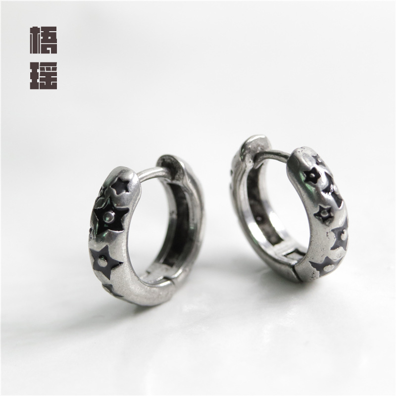 New Men's Piercing Earrings Stainless Steel Cast Geometric Pattern Fashion Trend Retro Men's Ear Buckle Single