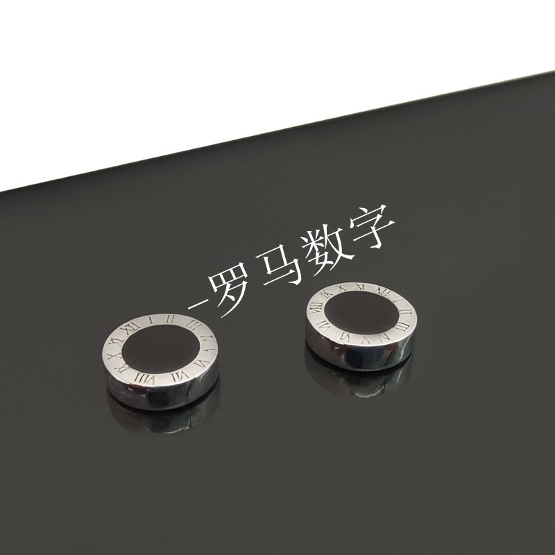 No earhole magnetic ear clip men's fashionable Ruffian handsome cold wind single earrings women's fashion Roman numeral magnet earrings