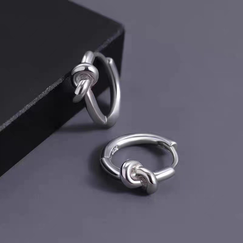 s925 sterling silver knotted ear ring ina trendy men's fashion handsome niche design cold style simple three-dimensional knot ear buckle