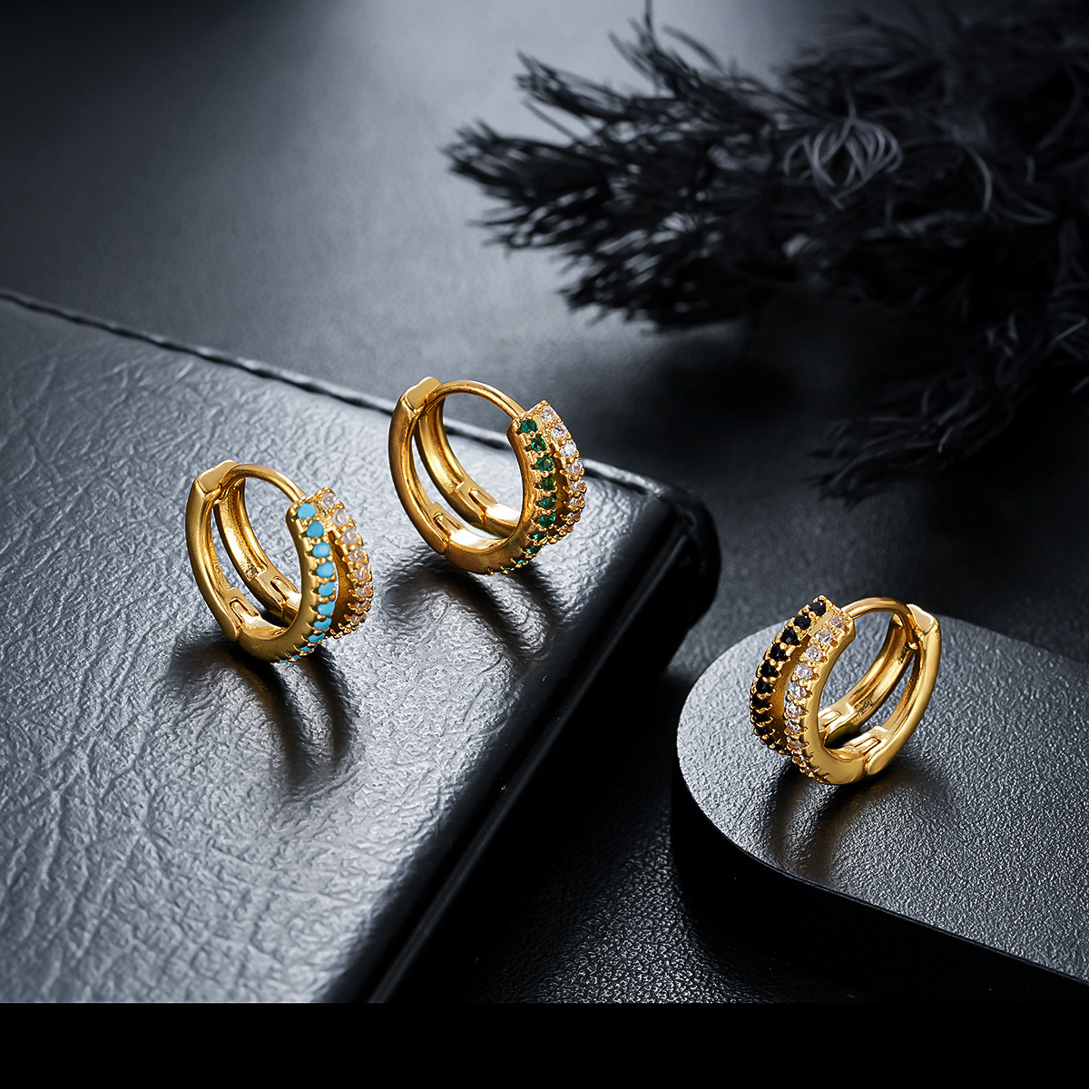 Double-Layer Zircon Earrings for Men, Versatile Gold Earrings for Girls, Accessible Luxury, High-End Earrings, Fashionable Earrings