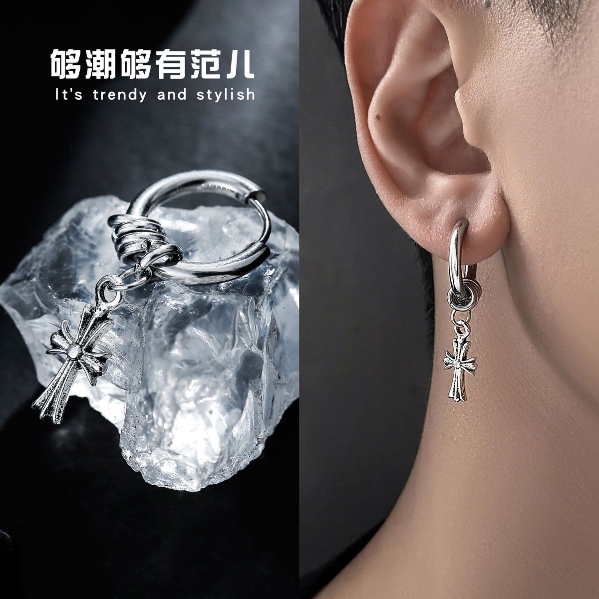 Cut-Made Bundled Cross Earrings for Men, Trendy and Personalized Punk Style Earrings, Fashionable, Simple and High-End Earrings