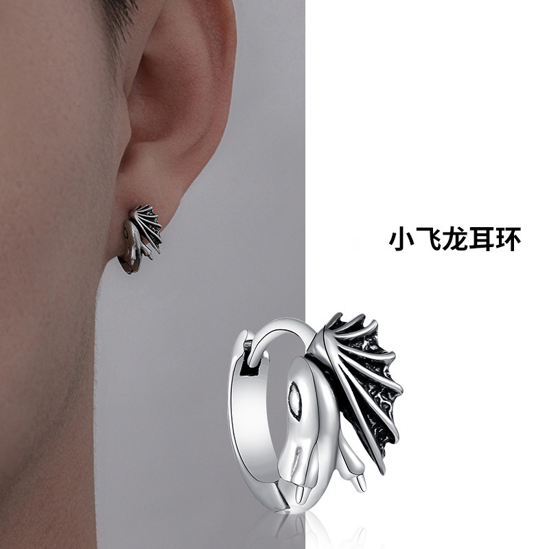Retro small flying dragon earrings men's fashion personality hip hop single earrings fashion cold style birth year men's dragon earrings