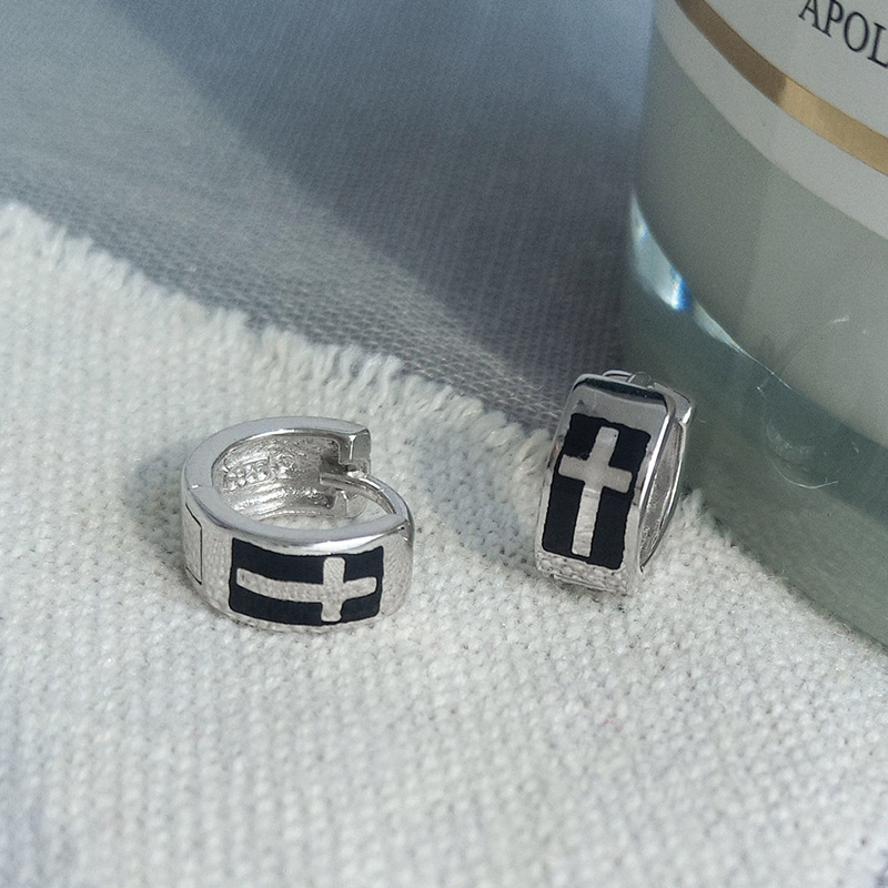 Vintage Cross Ear Buckle Men's Trendy Personalized Hip-hop Style Single Earrings Fashion All-match Summer Men's Earrings