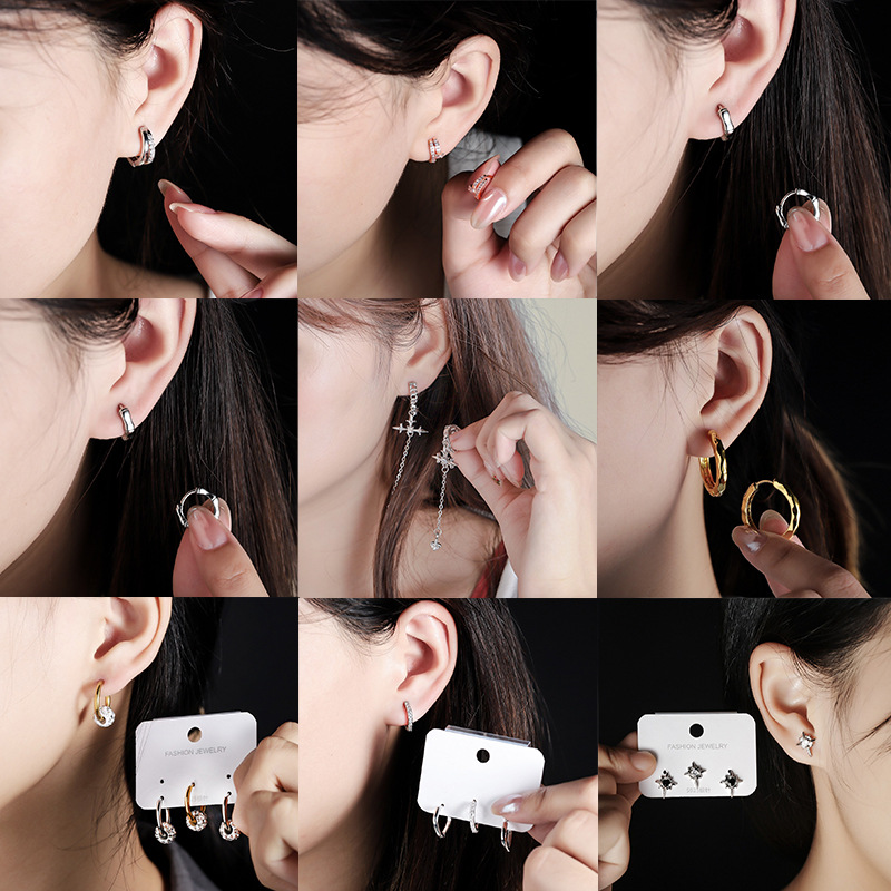 S999 Silver Earrings Female Niche Men's Earrings Fashion Personality Cool Handsome Cold Ear Ring Trendy Men's Earrings Cross-Border
