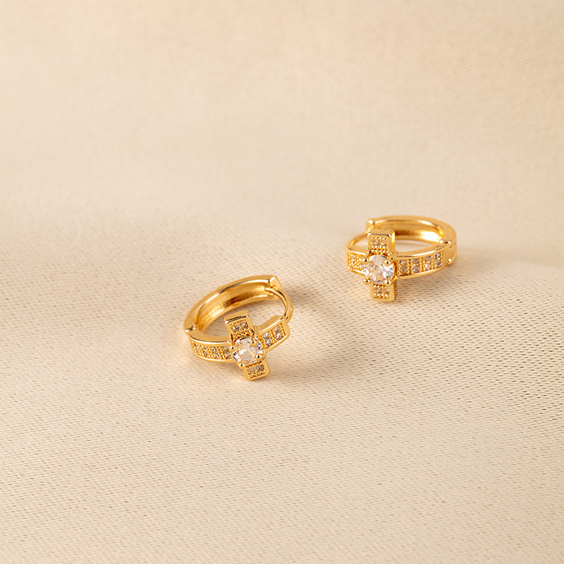 Full Diamond Cross Earrings Trendy Men Handsome Street Style Couple Earrings Cross-Border Hot Selling Super Flash Zircon Cross Earrings for Women