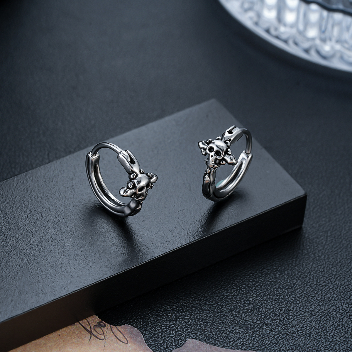 European and American Cross-Border Titanium Steel Skull Earrings Retro Men's Hip-Hop Accessories Simple Metal Style Earrings Women's Creative Jewelry
