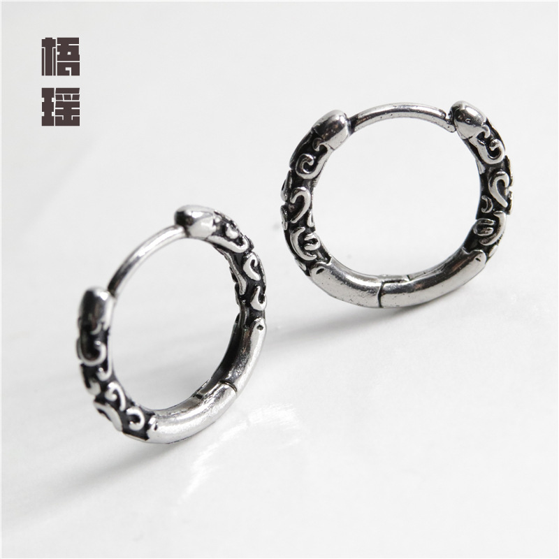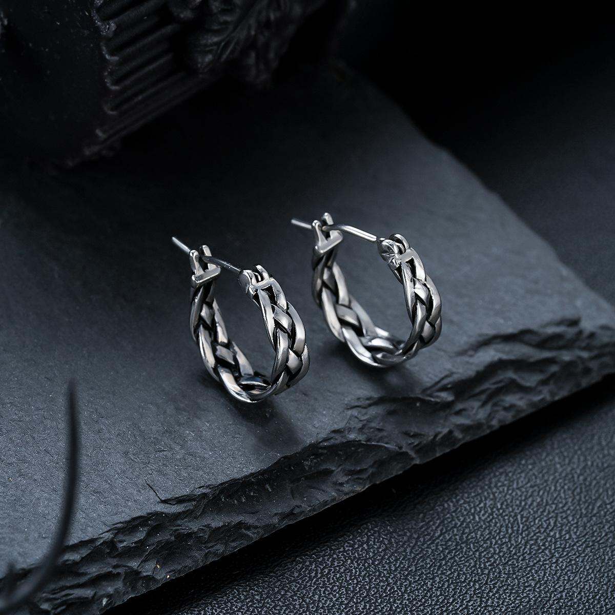 PS728 European and American Simple Cold Style Vintage Titanium Steel Casting Carved Twisted Rope Men's Ear Buckle Trendy Ear Ring