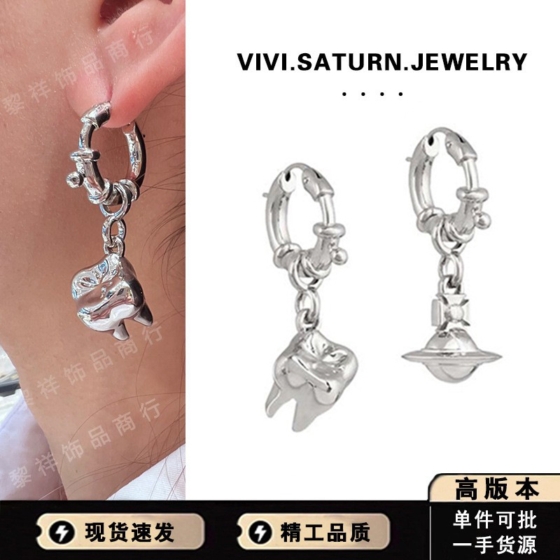 High Version 24 New Wisdom Tooth Stereo Saturn Orb Asymmetric Earrings High Sense Teeth Earrings for Men and Women