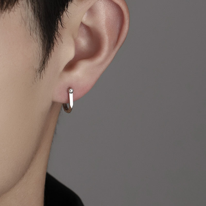 s925 sterling silver square round geometric ear buckle men's ins trendy hip hop personality simple advanced photosensitive surface ear ring men