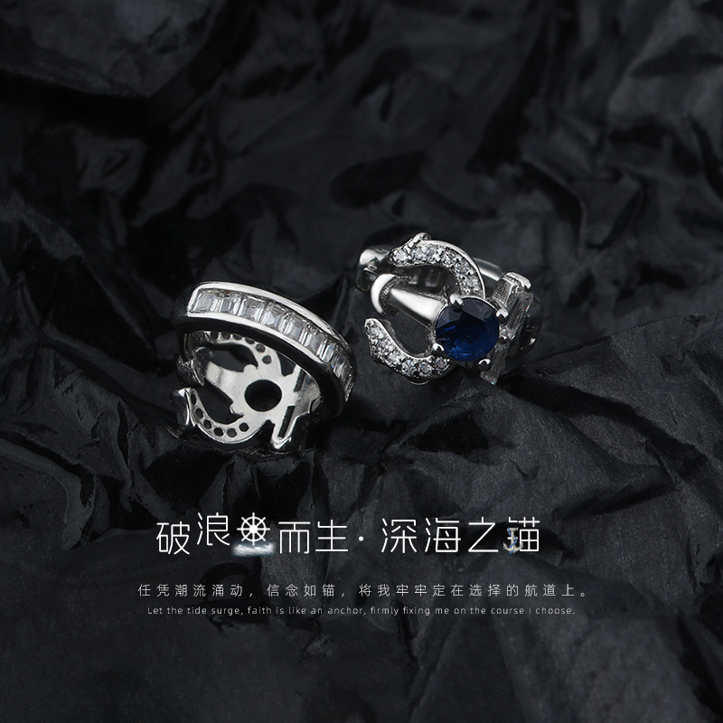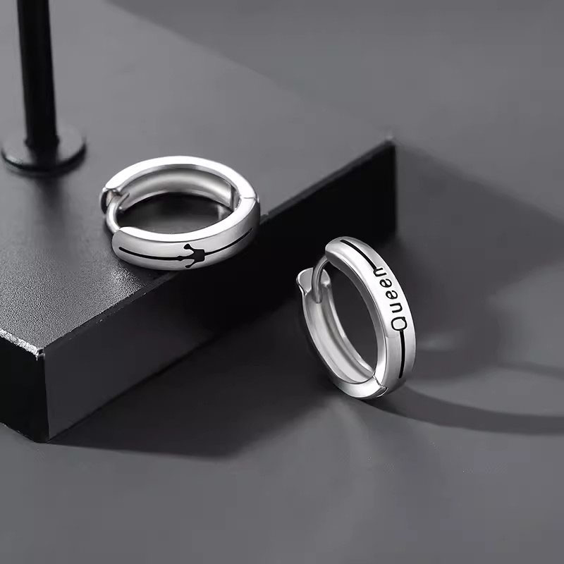 s925 sterling silver letter double-sided ear buckle men's ins trendy cool cool cool style hip hop Ruan handsome black Crown ear buckle