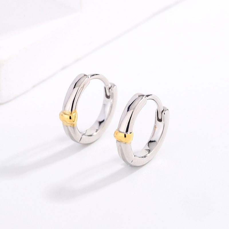 Gold-plated Men's Earrings S925 Sterling Silver Plain Circle Simple High-grade All-match Ear Buckle Street Style National Trendy Solid Ear Ring