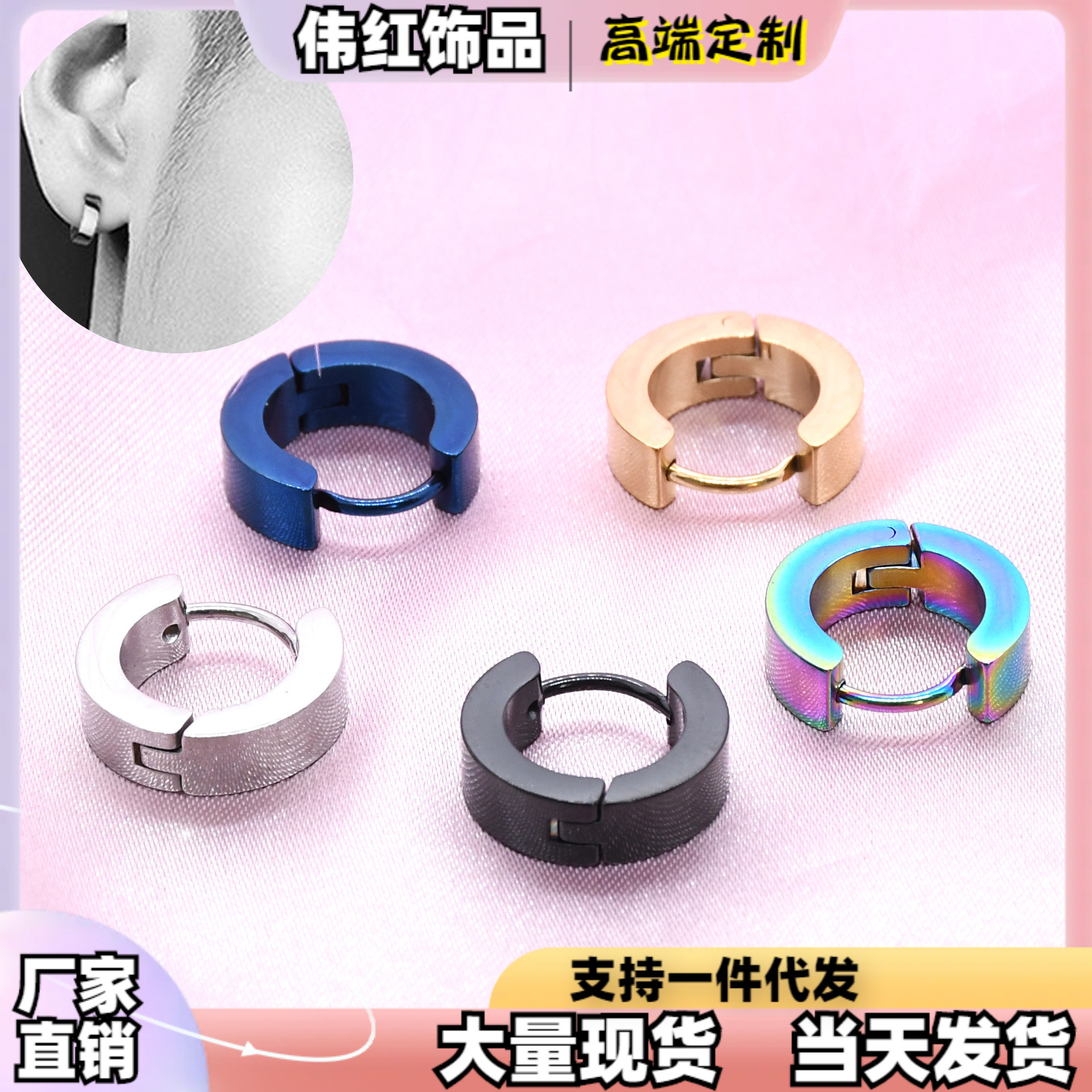 Cross-border Bold Titanium Steel Exaggerated Ear Ring Circle Ear Stud Distinctive Simple All-match Men's Single Hip-hop Star Earrings