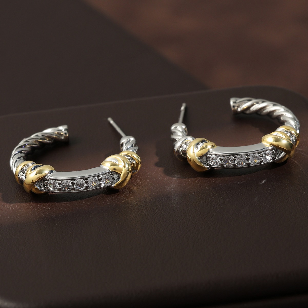 Men's Double Color Earrings Tang Grass Gold Ring Silver Trendy Cool Retro Female Elegant Silver Earrings Personalized Pair for Women