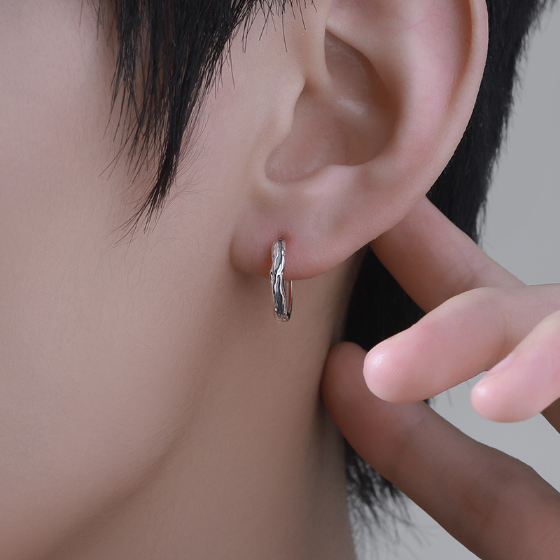 Silver Earrings Earrings Men's Trendy Niche Personality Single Men's Simple Ear Ring European and American Men's Earrings Curd Ring Ear Buckle
