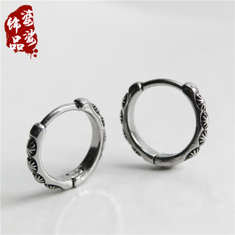 PS729 European and American Simple Cold Style Vintage Titanium Steel Casting Carved Men's Ear Buckle Trendy Ear Ring