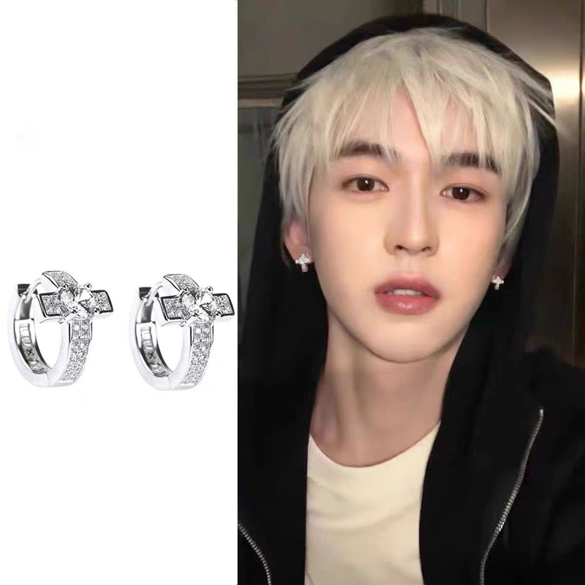 Cross Earrings Men's Trendy Zircon Earrings Ins Niche Micro-studded Hip-hop Men's High-end Elegant Couple Earrings