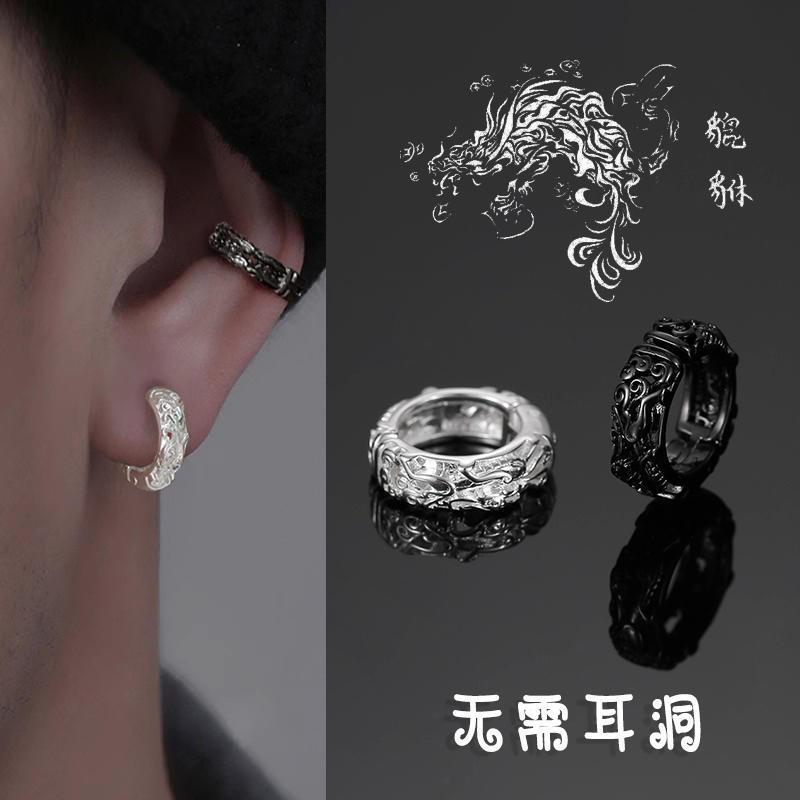 National Tide Pixiu Ear Clip Men's Punch-free Earrings Advanced Sense Retro Hip-hop Women's Personalized Single Ear Clip