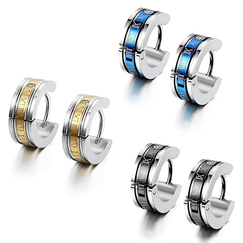 Star Fashion Electric Diamond Roman Numerals Titanium Steel Men's Earrings Ear Buckle Personalized Punk ebaywish Jewelry