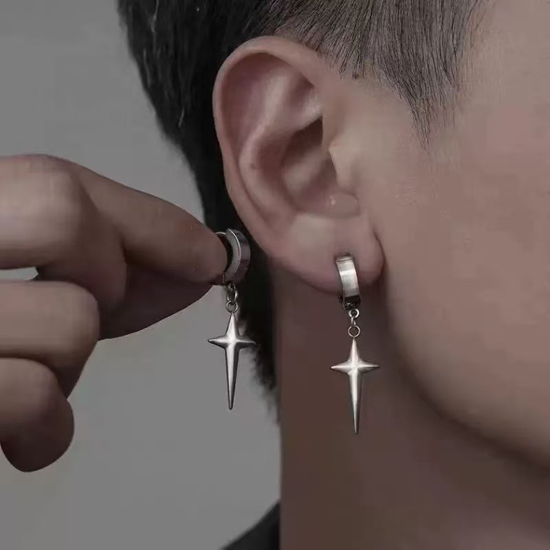 Personalized Cross Star Earrings for Men, Cool Style, Hip-Hop Trendy Single Men's High-End Fashion Ear Clips Without Pierced Earrings