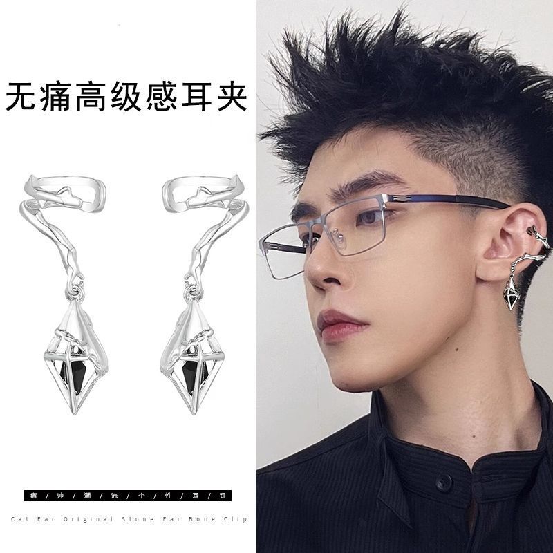 No Ear Holes Ear Clips Men's Trendy Distinctive Earrings Women's Men's New Trendy High-end Sense No Ear Holes False Ear Studs Hip-hop Ear Accessories