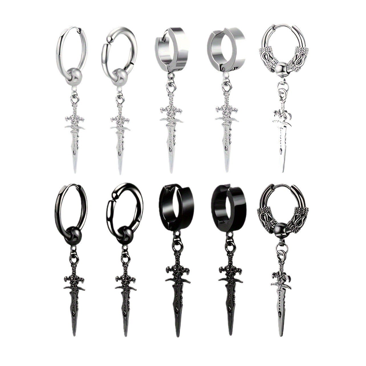 Cross-Border Personalized Hip-Hop Street Couple Earrings Trendy Men's Earrings Cross Sword Men's Versatile Punk Style