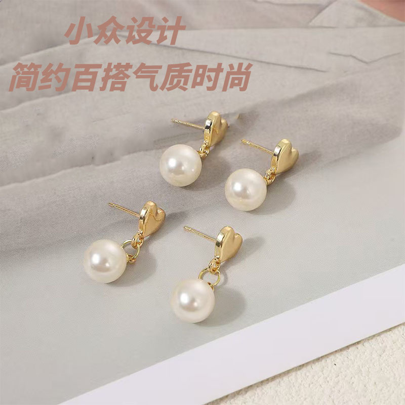 Unique Design Heart-Shaped Faux Pearl Earrings for Women, Simple and Versatile, Stylish and Elegant Ear Pendants