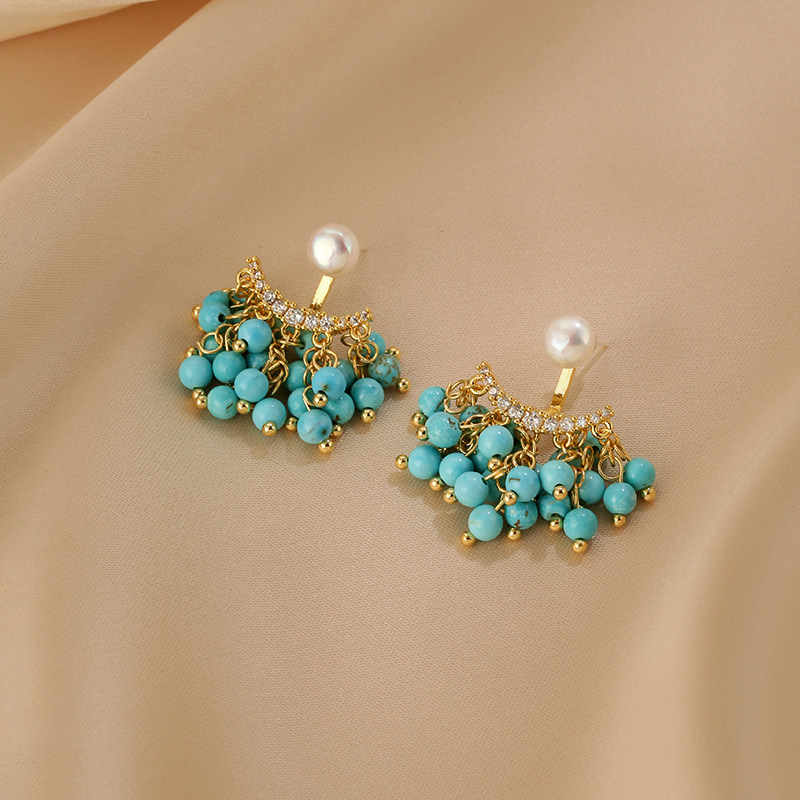 [titanium steel] fashion and elegant retro style earrings oil dripping craft blue pattern earrings women's temperament earrings