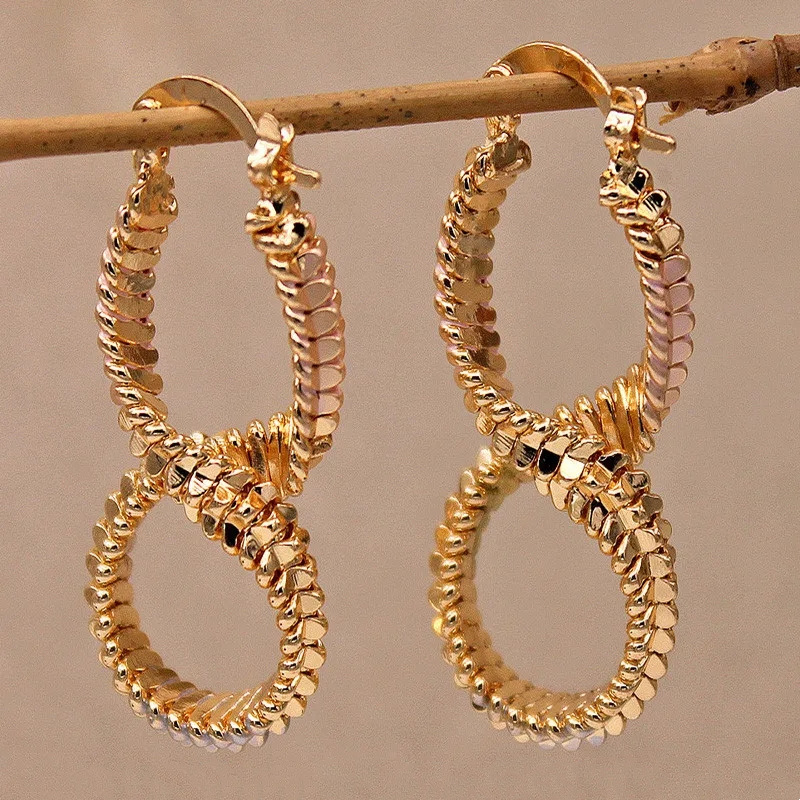 Cross-border classic ladies earrings fashion inlay winding copper material temperament high niche design sense earrings wholesale