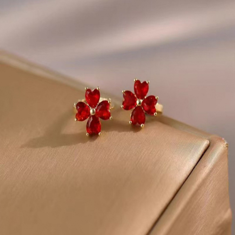 New Transparent Wine Red Heart Earrings for Women, Simple Elegant, Internet Celebrity Fresh Commuter Earrings, Retro High-End Earrings