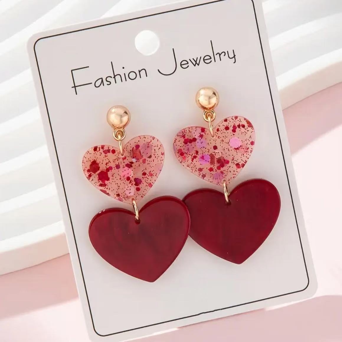 New Valentine's Day Pink Sequined LOVE acrylic earrings romantic sweet temperament personalized earrings for women Wholesale