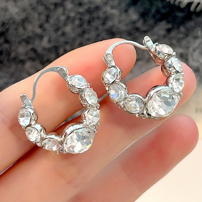 Metal Cold Wind Big Ear Ring Earrings Cross-border C- shaped Diamond Earrings Retro French Elegant Internet Celebrity Women