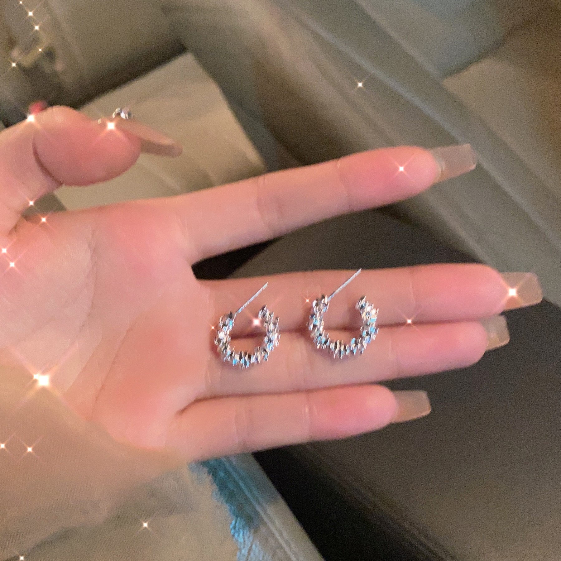 Diamond-Encrusted Versatile Silver Earrings, Simple and Fashionable Earrings, Feminine Double-Layer Hoop High-End Earrings