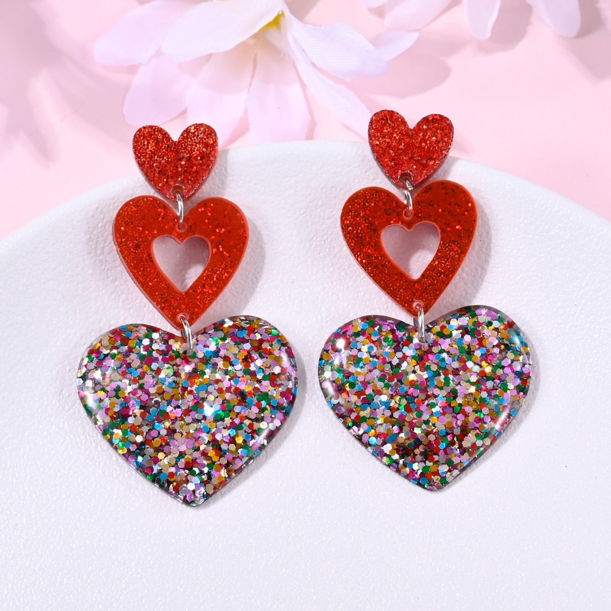 Love Earrings Cross-Border European and American Valentine's Day Shiny Heart-Shaped Acrylic Earrings Personalized Versatile Elegant Earrings for Women