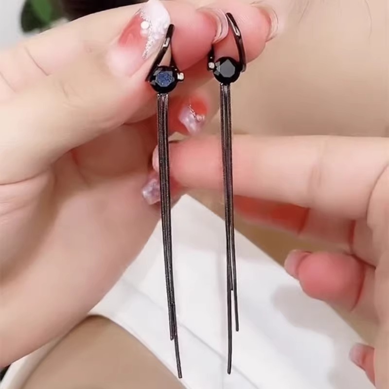 Black Tassel Earrings for Women, Light Luxury, Retro Temperament, High-End Earrings, Fashionable, Exquisite and Versatile Earrings, Jewelry Wholesale
