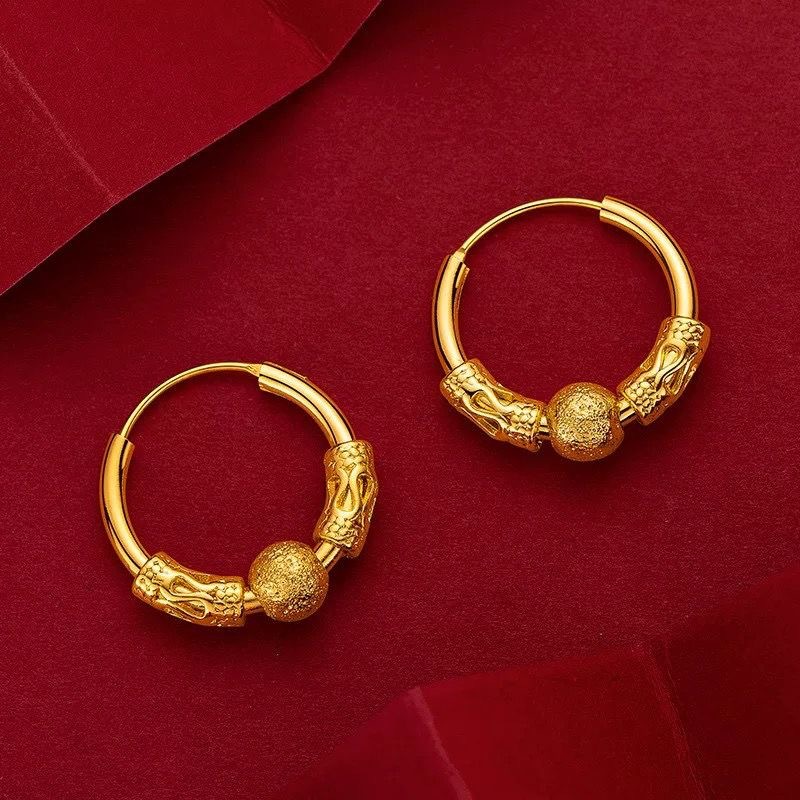 Live Broadcast Vietnamese Sand Gold Transfer Bead Earrings Brass Gold Plated Glossy Small Gold Beads Transfer Bead Women's Earrings Wholesale