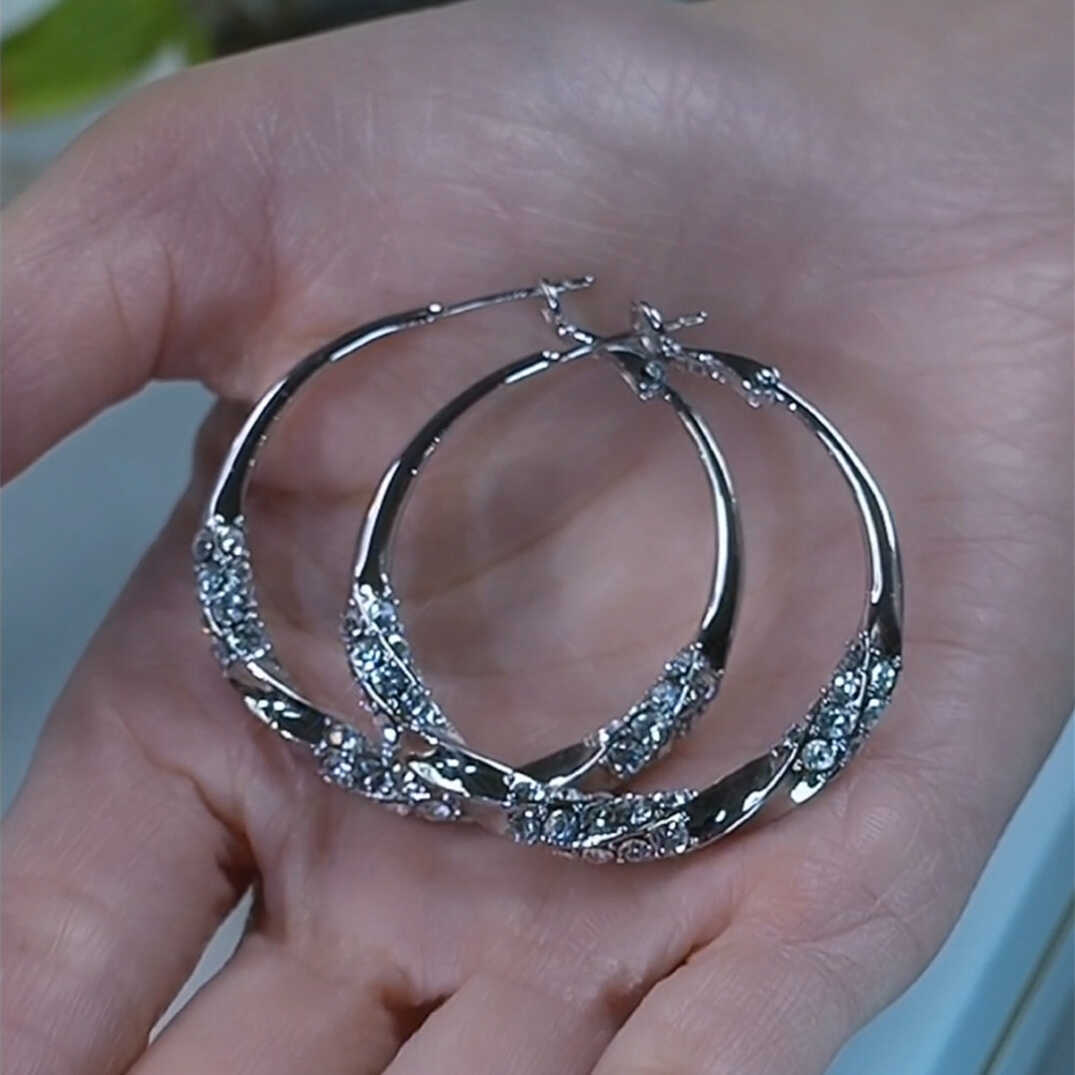 Silver Exaggerated Large Hoop Earrings with Rhinestones for Women, Shiny Design, European and American Style, Trendy Versatile Earrings