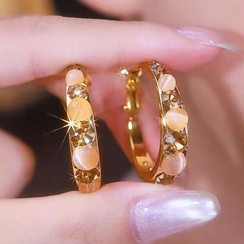 Champagne Gold Diamond-Encrusted Rhinestone Earrings for Women 2025 Autumn and Winter New Design Trendy Internet Celebrity Trend