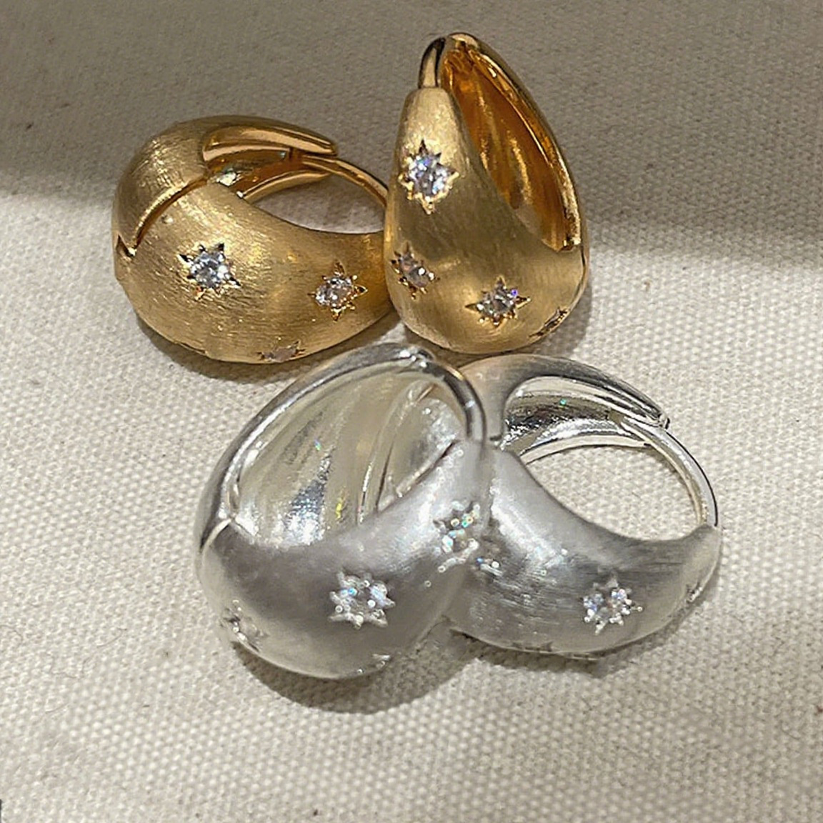 Korean Style Brushed Star Zircon Earrings, Fashionable and Versatile Retro Style Earrings, High-End Light Luxury Style Women's Accessories