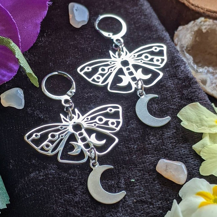 Cross-border foreign trade Amazon cute silver punk moth moon crescent pendant ladies earrings factory direct sales