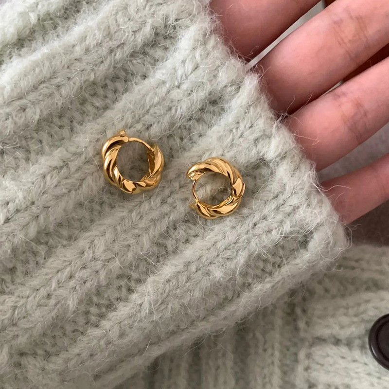 S925 Sterling Silver Twist Earrings Round Metal Earrings Simple Niche Design Cool Style Earrings for Women