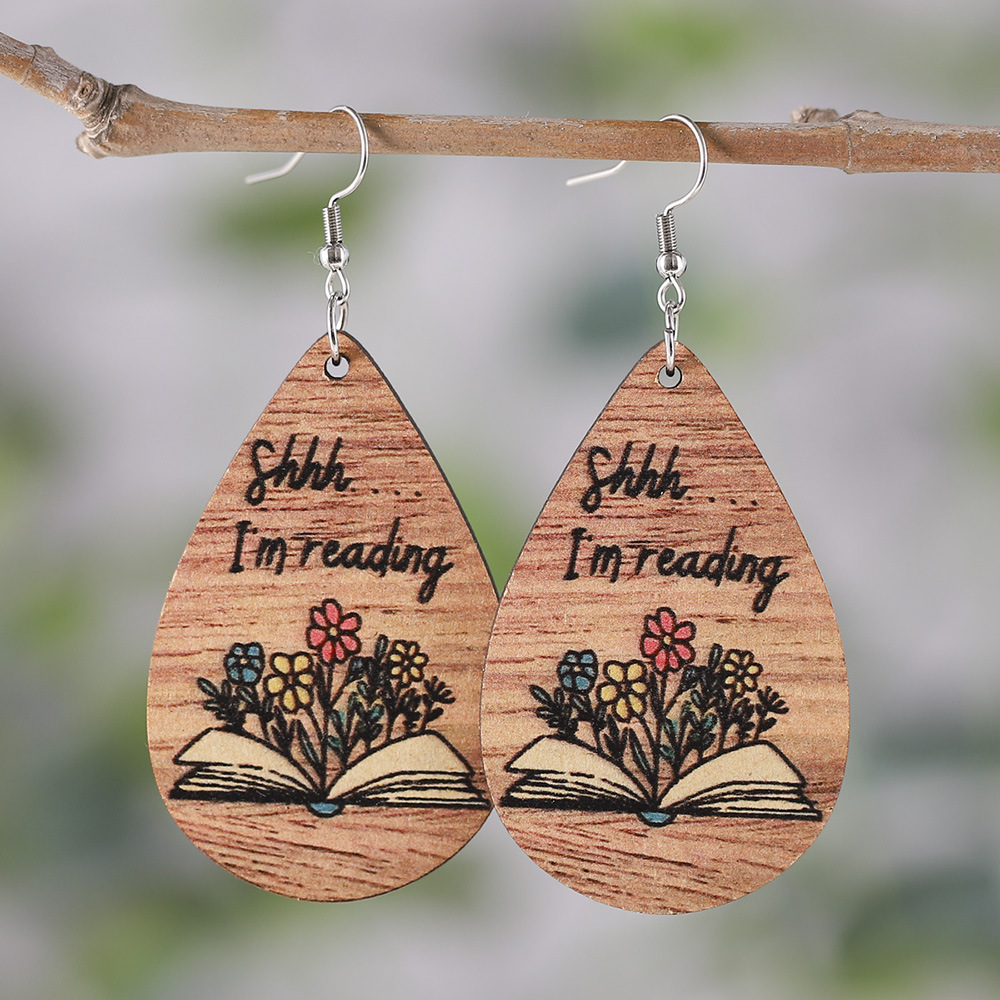 New Personalized Drop Hanging Earrings for Girls Graduation Season Gift Shh I'm Reading Double-sided Wooden Earrings