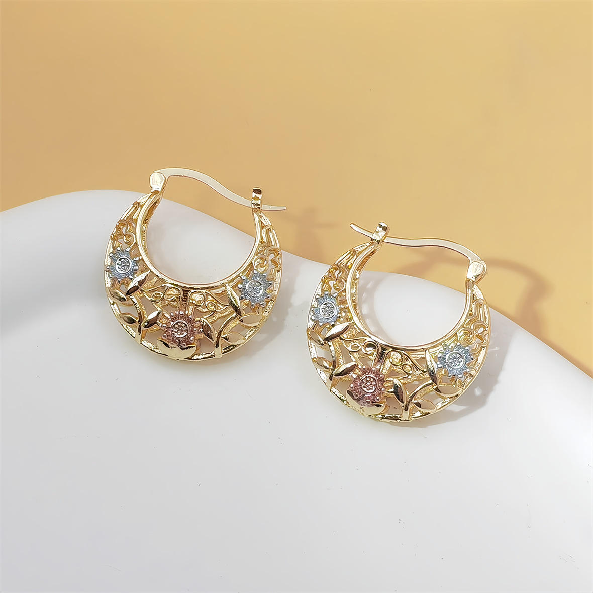 Cross-border Europe and the United States round diamond ear buckle plated 18K gold fashion simple temperament earrings niche high-end earrings women