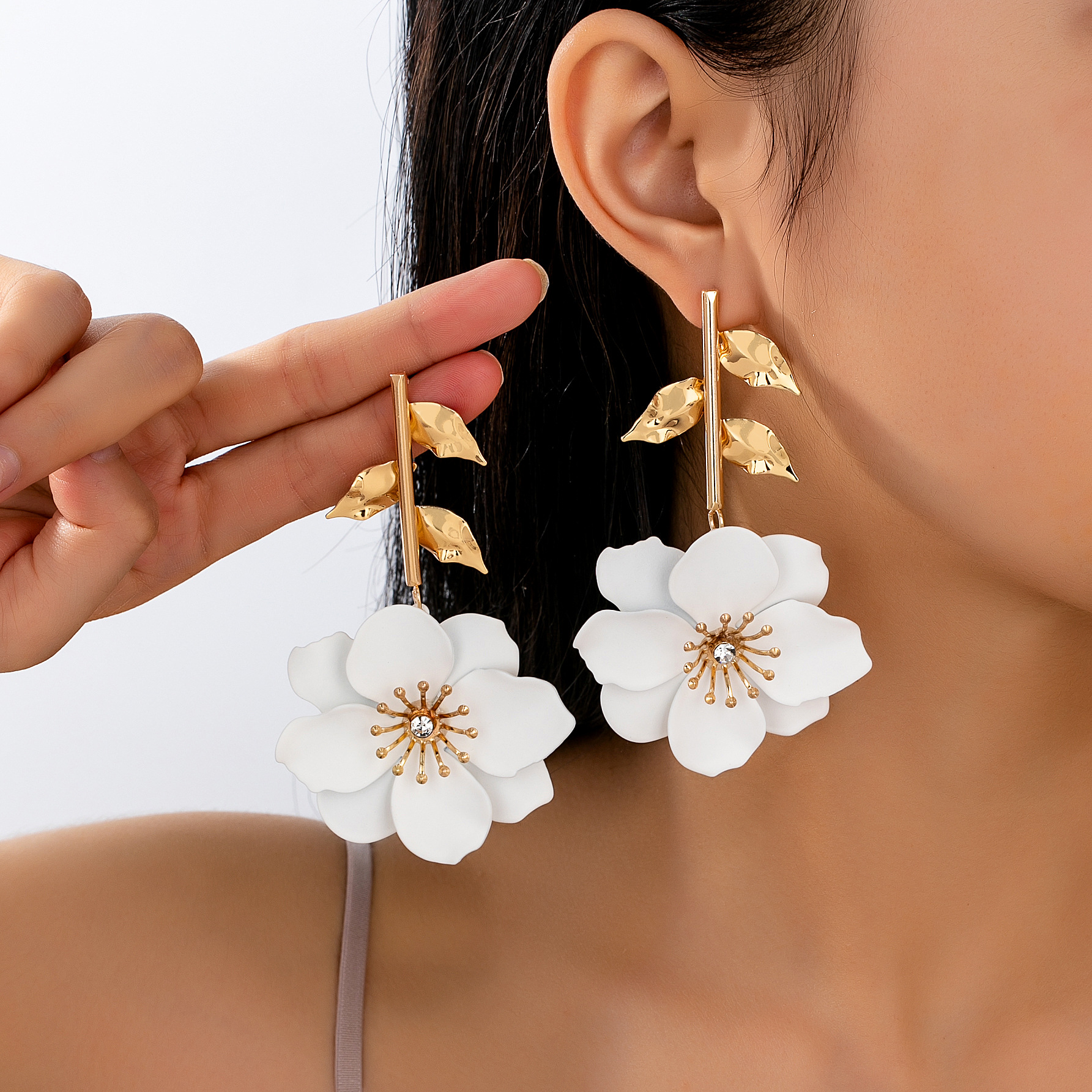 Cross-Border Hot Selling Fashionable High-End Inlaid Flower Earrings Suitable for Women to Wear on Daily Beach Vacations