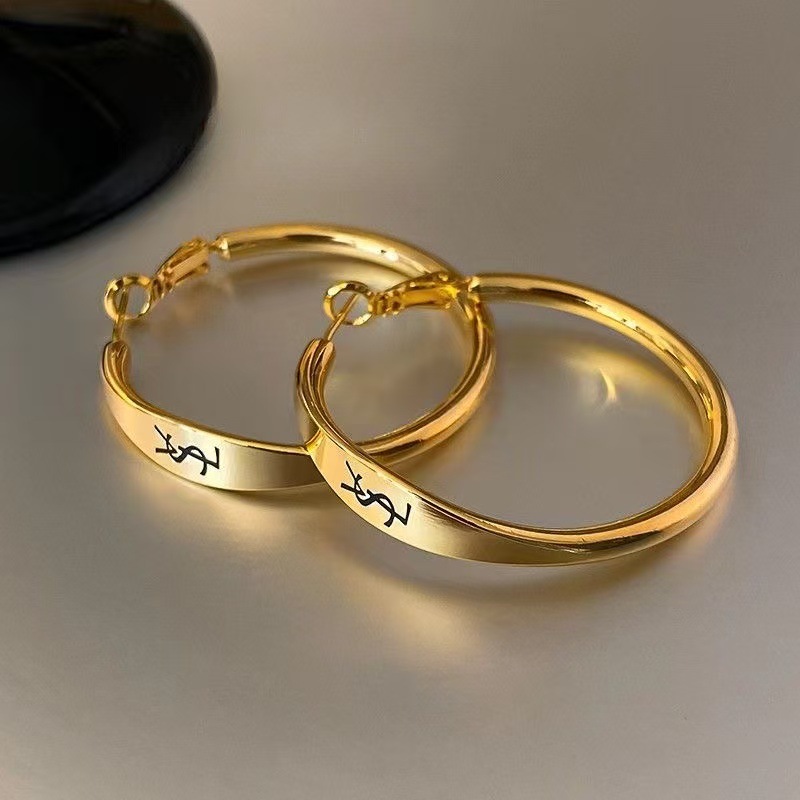 Gold Letter Large Hoop Earrings for Women European and American Retro Elegant High-End Earrings Exaggerated and Atmospheric Design Earrings