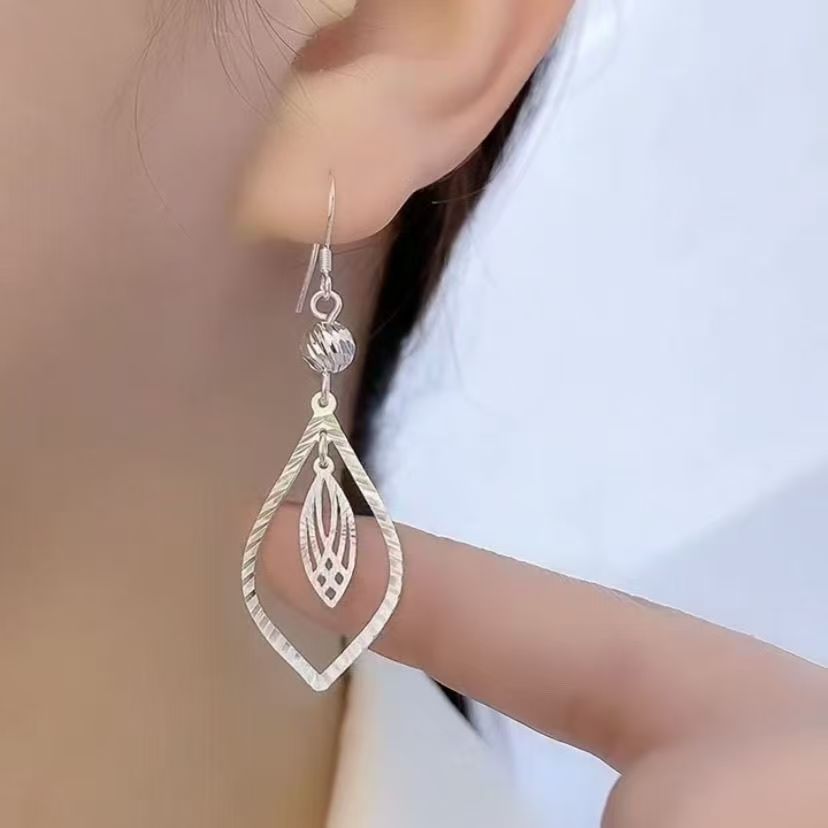 European and American Fashion Petal Earrings Flower Leaves Tassel Earrings Vintage High-end Earrings Women's 925 Silver Pin