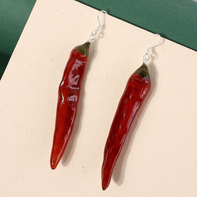 Drop glue chili earrings vegetable Hanfu antique wholesale new real dry fruit long original handmade earrings women