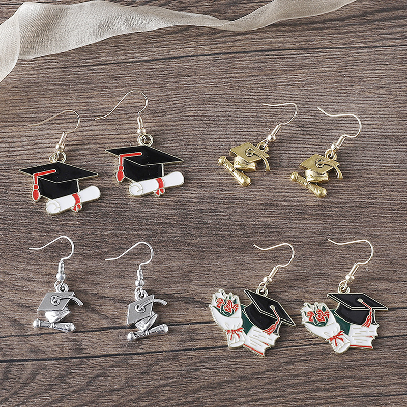 Europe and the United States cross-border fashion graduation season flower earrings women's creative personality bouquet drop oil scholar cap color earrings