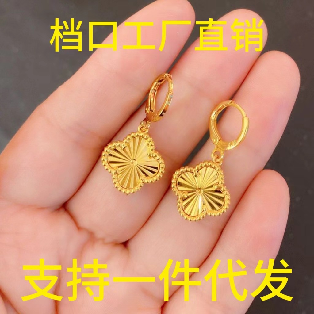 Vietnam sand gold electroplating real gold fashion temperament lucky four-leaf clover earrings female e-commerce live factory supply wholesale