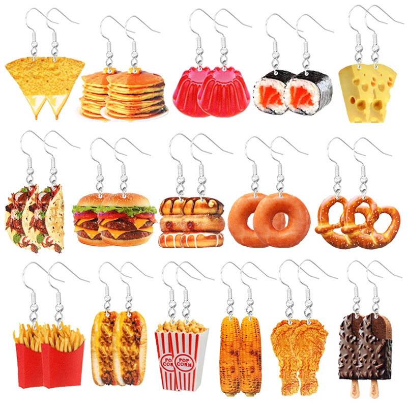 Aliexpress New Hamburger Donut Earrings European and American Fashion Exaggerated Earrings Acrylic Dessert Ear Jewelry for Women