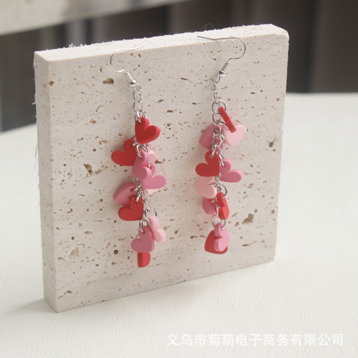 Romantic Fashion Pink Love Acrylic Pendant Long Earrings Women Valentine's Day Party Dating Gift